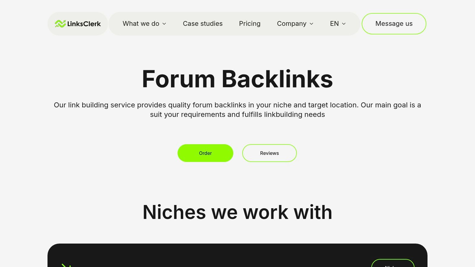 LinksClerk offers a streamlined, productized service for acquiring forums for backlinks, making it a strong choice for agencies that prefer a hands-off approach. It offers tiered packages with clearly defined metrics, such as minimum Domain Authority (DA) and traffic thresholds.