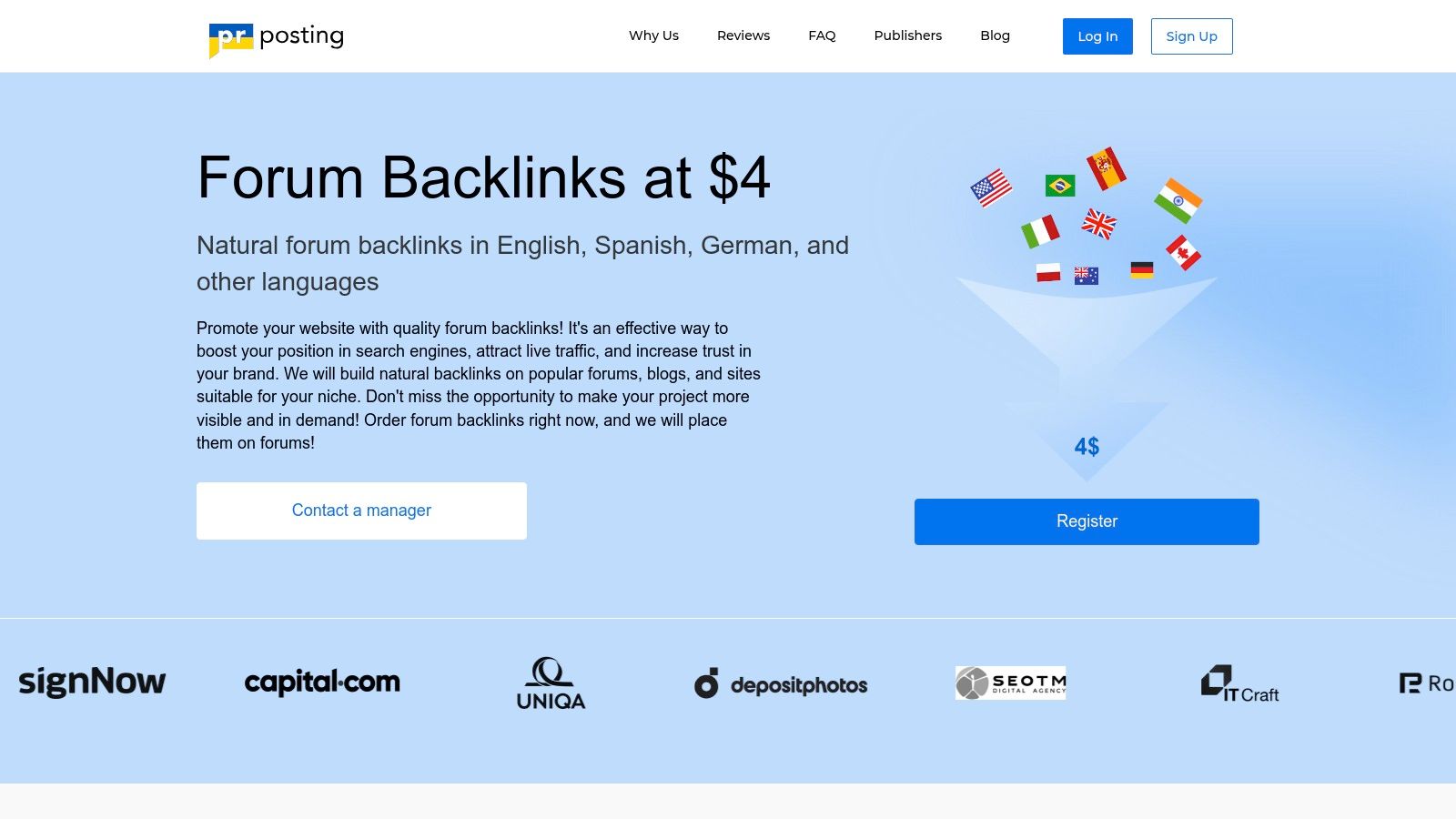 PRPosting operates as a managed service specializing in crowd marketing, which prominently features forums for backlinks. This platform is tailored for agencies needing a streamlined process for acquiring forum links without handling the outreach themselves.